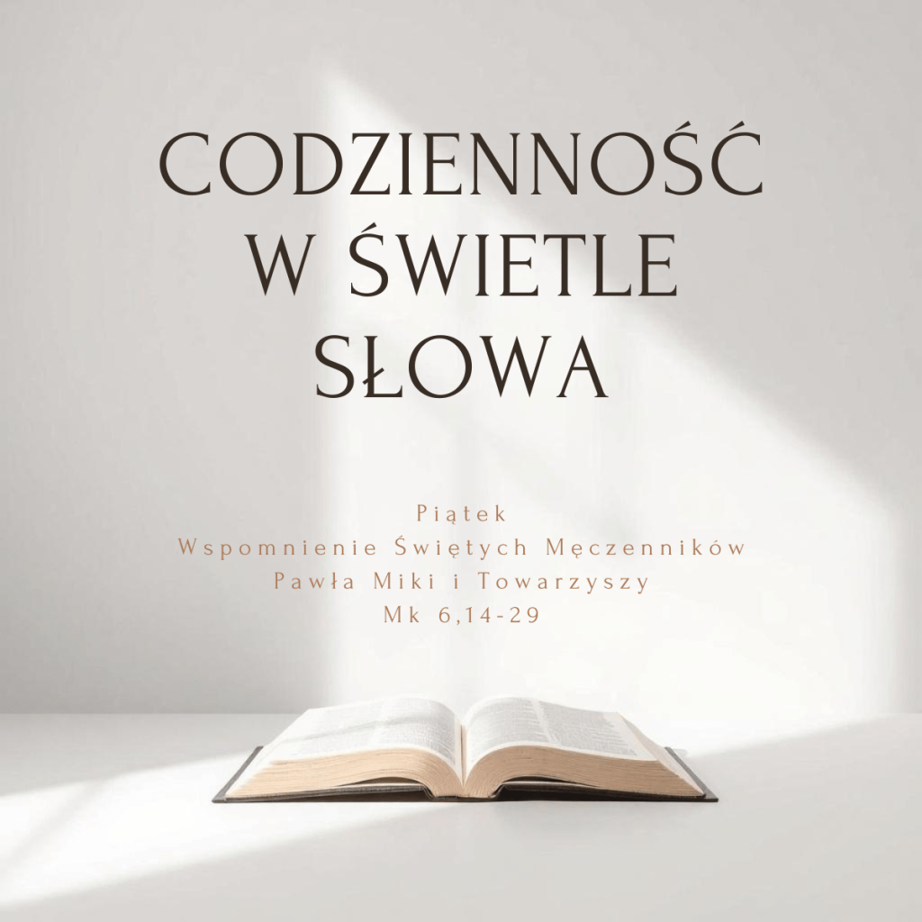 - Ten bowiem Herod kazał pochwycić Jana i związanego trzymał w więzieniu z powodu Herodiady, żony brata swego, Filipa, którą wziął za żonę. Jan bowiem napominał Heroda: «Nie wolno ci mieć żony twego brata» (ww. 17-18) W kolejnych wersetach ewangelista w formie retrospekcji opowiada o śmierci Proroka znad Jordanu. Powodem jego aresztowania było to, że odważnie wytykał Herodowi cudzołóstwo polegające na tym, że żył z żoną swego brata Filipa. Stanowcze słowa Jana – „Nie wolno ci” (gr. uk eksestin soi) – przypominały, że bycie władcą nie zwalnia od wierności Prawu (por. Wj 20,14.17; Pwt 5,18.21). Dostrzec tu można dramatyczne napięcie między ludzką pychą a nienaruszalnym ładem moralnym objawionym przez Boga. Uwięzienie proroka, a następnie jego śmierć, były ceną, jaką zapłacił on za przeciwstawienie się nieprawości władcy. Wzorem starotestamentalnych proroków Jan do końca stawał w obronie Bożego prawa i zapłacił za to najwyższą cenę. Czy mam w sobie odwagę, by zło nazywać złem, nawet, gdy wiąże się to z ofiarą z mojej strony? Czy odrzucam pokusę konformizmu, podpowiadającą mi, bym w imię świętego spokoju zamilkł lub nawet poszedł na ugodę ze złem?