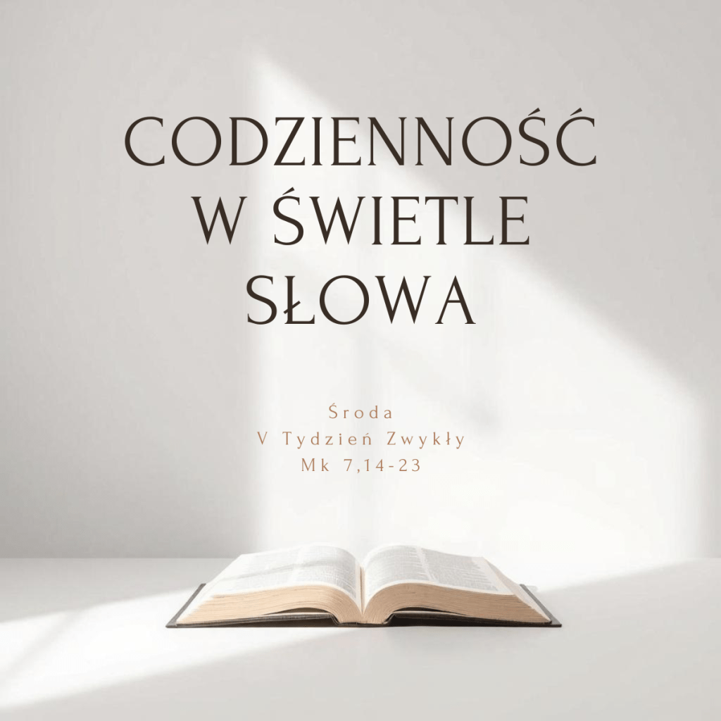 - Pierwsza część siódmego rozdziału Ewangelii Marka poświęcona jest tematowi czystości/nieczystości rytualnej (por. Mk 7,1-23). Najpierw do Jezusa przychodzą faryzeusze i uczeni w Piśmie z Jerozolimy. Z właściwą sobie pewnością oskarżają Jego uczniów o nieprzestrzeganie faryzejskich zasad dotyczących czystości rytualnej. Ich słowa stają się przyczynkiem do ukazania przez Pana, na czym polega prawdziwa pobożność oraz jakim zagrożeniem jest jej legalistyczne rozumienie. Duchu Święty prowadź mnie w dzisiejszej modlitwie Słowem.