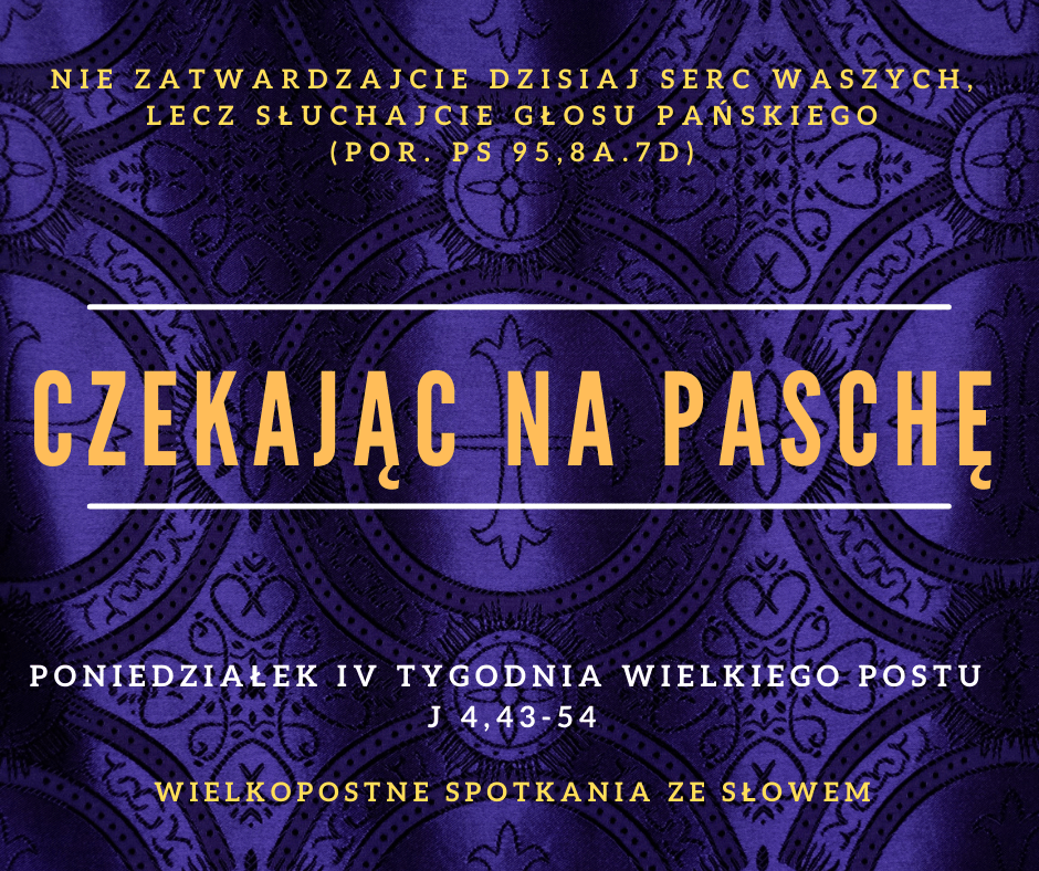 • „Usłyszawszy, że Jezus przybył z Judei do Galilei, udał się do Niego z prośbą, aby przyszedł i uzdrowił jego syna, był on już bowiem umierający” (w. 47). Wieść o Jezusie dociera również do urzędnika króla Heroda Antypasa, który był podporządkowanym Rzymowi władcą Galilei. Bardzo prawdopodobne, że urzędnik był poganinem. Mamy zatem tutaj kolejną po perykopie z Samarytanką opowieść o spotkaniu Jezusa z kimś, kto nie należał do ludu Izraela. Również w tym przypadku pojawia się wiara w Jezusa, która w spotkaniu z Nim zostaje udoskonalona. W jaki sposób patrzę na osoby luźno związane z chrześcijaństwem lub niewierzące? Czy mam świadomość, że również do nich zaadresowana jest zbawcza misja Jezusa?