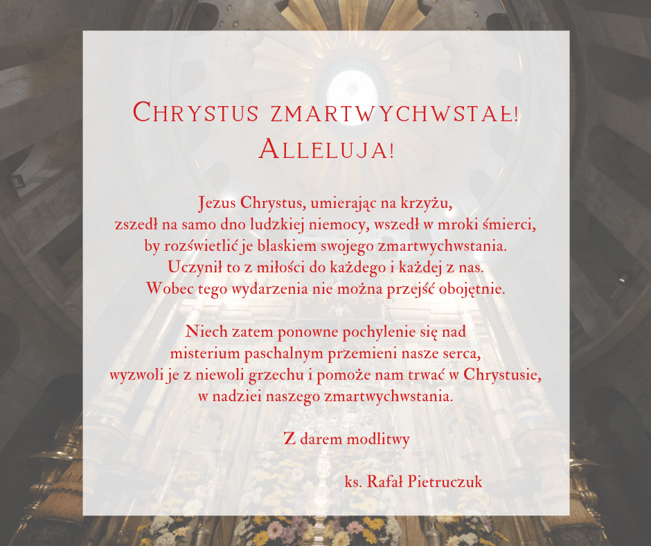 • Po dzisiejszej Mszy św. zatrzymam się na chwilę przed Najświętszym Sakramentem, by porozmawiać z Jezusem. Poproszę Go, bym nie utracił paschalnej radości.
