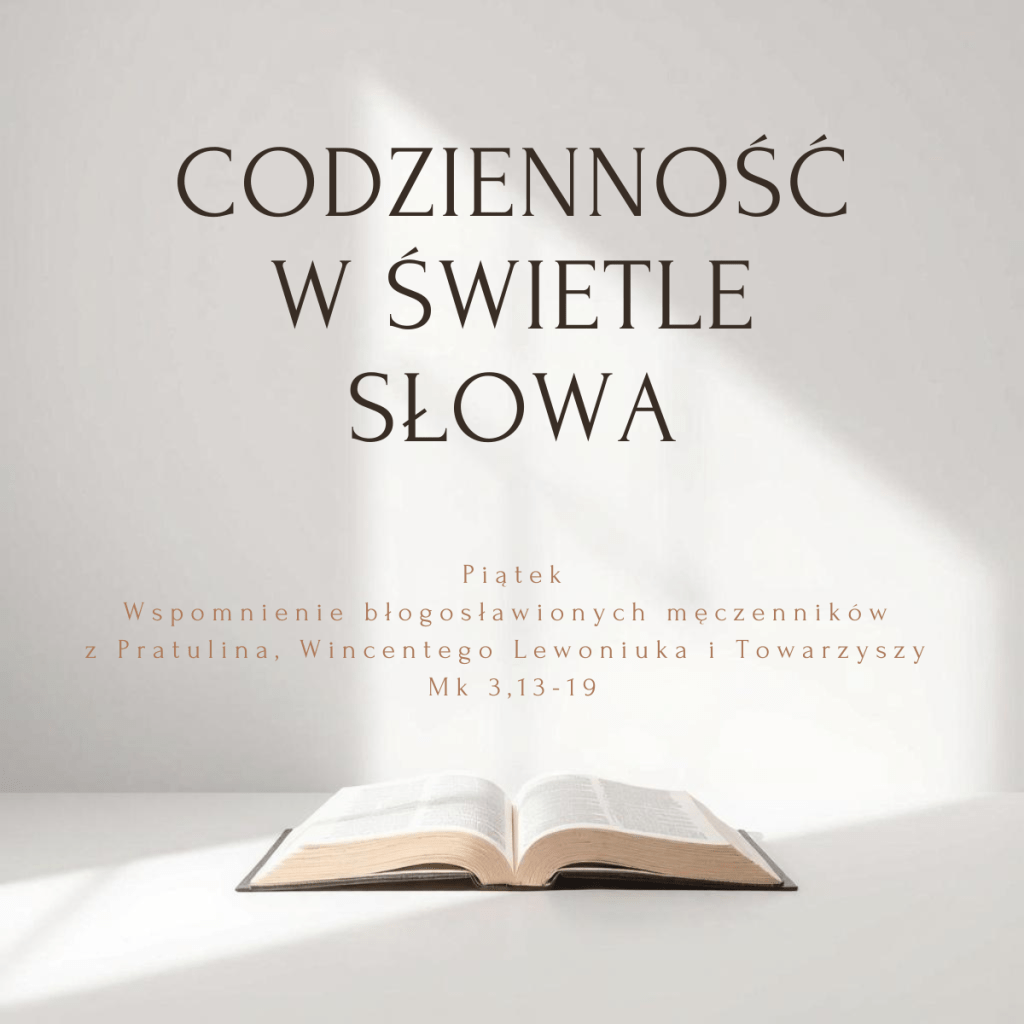 - Jezus na chwilę opuszcza okolice Jeziora Galilejskiego i udaje się na górę, która będzie miejscem początku nowego etapu w Jego działalności. Pan powołuje do najbliższego grona swoich uczniów dwunastu mężczyzn, którzy staną się filarami przyszłej wspólnoty Kościoła, ludu Nowego Przymierza. Duchu Święty, przyjdź i napełnij moje serce, pomóż mi całym sobą wniknąć w dzisiejsze Słowo.