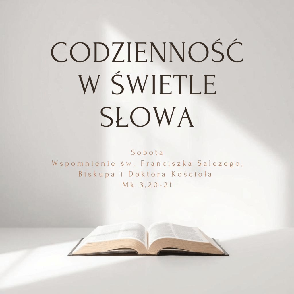 - Po podniosłym wydarzeniu, jakim był wybór Dwunastu, Jezus wraz z uczniami wraca do Kafarnaum, by po raz kolejny spotkać się z ogromem ludzkiej biedy. Dodatkowo, Jego pełna poświęcenia i gorliwości postawa zostaje negatywnie odebrana przez najbliższych, którzy siłą chcą Go zawrócić z obranej drogi. Duchu Święty, otwieraj przede mną skarbiec dzisiejszego Słowa.
