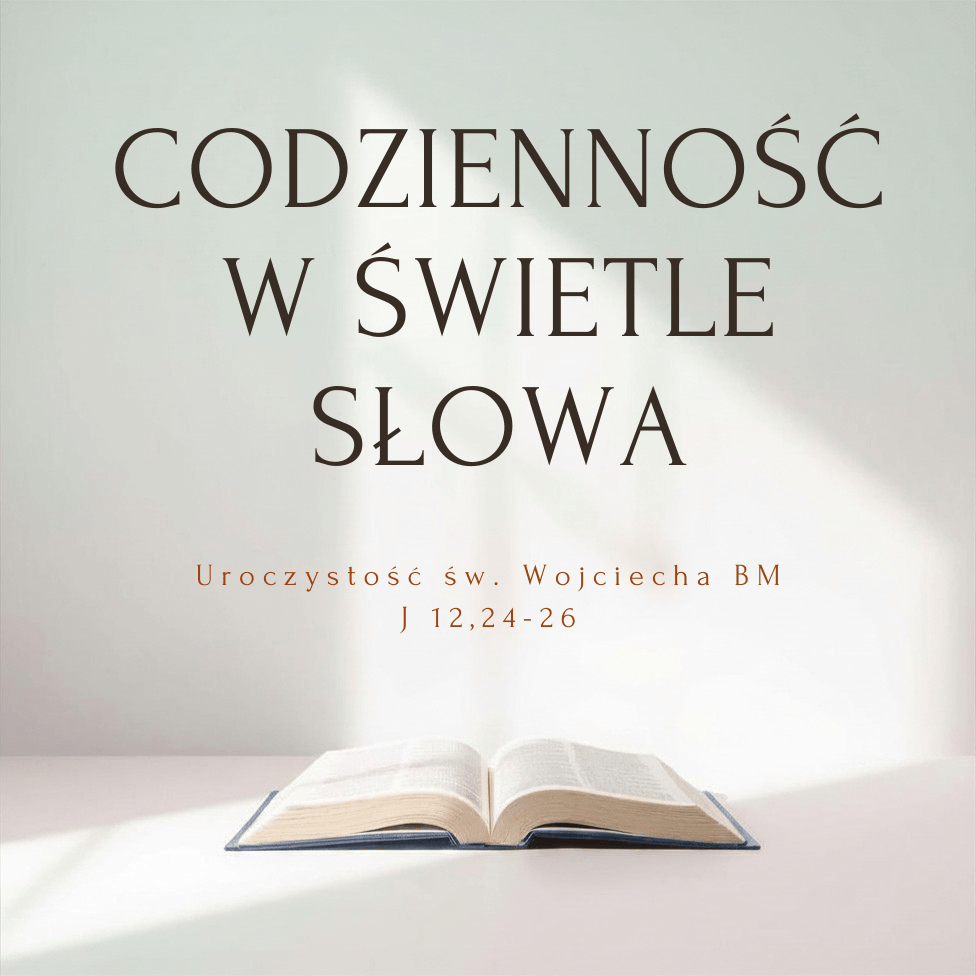 - Zaprawdę, zaprawdę, powiadam wam: Jeśli ziarno pszenicy, wpadłszy w ziemię, nie obumrze, zostanie samo jedno, ale jeśli obumrze, przynosi plon obfity (w. 24) Jezus swoim zwyczajem przyszedł do Jerozolimy, by uczestniczyć w dorocznym święcie Paschy. Tym razem jednak będzie to Pascha wyjątkowa, gdyż to On sam, umierając na krzyżu, zajmie miejsce baranka paschalnego. Chwilę wcześniej ewangelista opowiedział o tłumach, które witały Jezusa w trakcie Jego uroczystego wjazdu do świętego miasta. Wielu radośnie wołało na Jego cześć: „Hosanna! Błogosławiony, który przychodzi w imię Pańskie” (J 12,13; por. Ps 118,26). Również obecni w mieście Grecy, czyli poganie sympatyzujący z judaizmem, dowiedziawszy się o przybyciu Pana, prosili Filipa, by zaprowadził ich do Niego (por. 12,20-21; por. Dz 10,2). Odczytując w tej prośbie znak nadejścia czasu swojej męki, Pan wypowiedział słowa: „Nadeszła godzina, aby został otoczony chwałą Syn Człowieczy” (12,23). Pierwszy werset dzisiejszego czytania ewangelicznego jest kontynuacją powyższej wypowiedzi. Posługując się krótką przypowieścią o ziarnie pszenicy, Jezus wyjaśnia, jaki jest sens czekającej Go męki. By móc przynieść plon, ziarno musi być wrzucone w ziemię, czyli niejako obumrzeć. Podobnie będzie ze zbawianiem, które Pan przyniesie światu. By mogło ono stać się udziałem każdego człowieka, konieczna jest Jego śmierć. Będąc ofiarą wynagradzająca wszelki grzech stanie się ona narzędziem pojednania całej ludzkości z Bogiem. Zatrzymam się na chwilę nad misterium wywyższenia Syna Człowieczego. Spróbuję na nowo dostrzec w nim wielki znak miłości Boga, który nie chce, bym zginął przygnieciony moją nieprawością, lecz posyła swojego Syna, by mnie oczyścić i dać mi nowe życie.