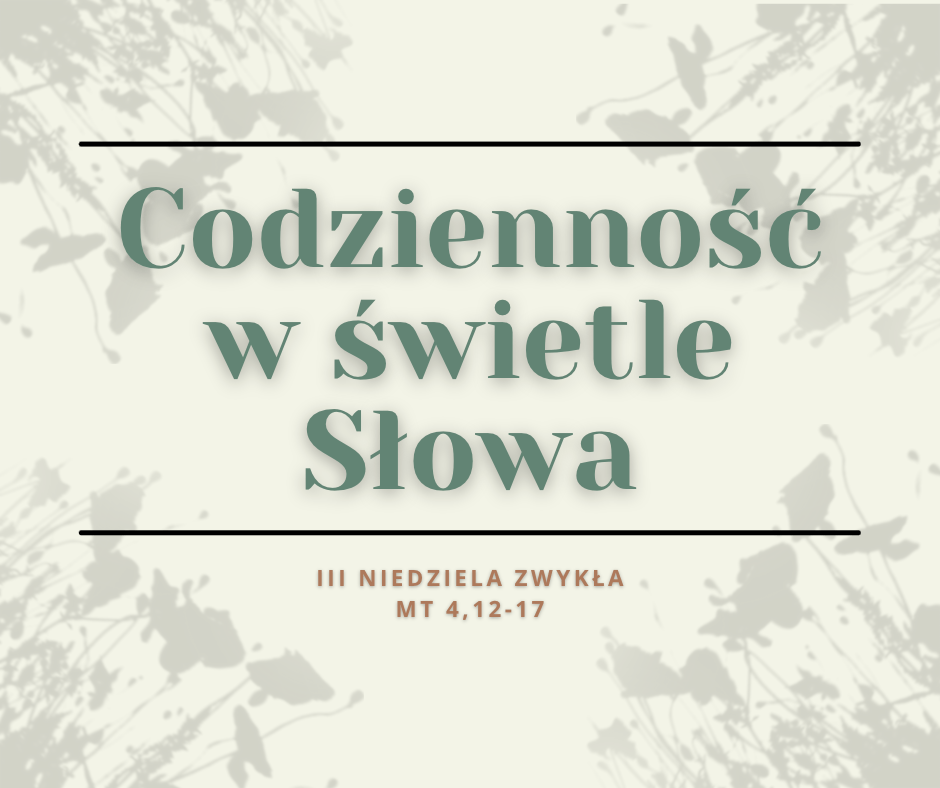 - Odtąd począł Jezus nauczać i mówić: «Nawracajcie się, albowiem bliskie jest królestwo niebieskie (w. 17) Po raz pierwszy w Ewangelii Mateusza wezwanie do nawrócenia padło z ust Jana Chrzciciela, który wołał nad Jordanem: „Nawracajciesię, bo bliskie jest królestwo niebieskie” (Mt 3,2). Podobne przesłanie wybrzmi także, gdy Jezus będzie posyłał z misją Dwunastu: „Idźcie i głoście: Bliskie już jest królestwo niebieskie” (10,7). Za każdym razem chodzi o zmianę myślenia i działania (gr. metanoeo – dosł. „zmieniać myśl, odwracać myśl”). Żyjąc w oddaleniu od Boga, człowiek coraz bardziej ulega subiektywnej wizji świata. Skupiając się na sobie i własnych potrzebach, jest w stanie podeptać wszystko, co najcenniejsze, włącznie z darem życia. Zarówno Jan Chrzciciela, jak i sam Jezus, wzywając do nawrócenia, zachęca swoich słuchaczy, by podjęli trud uczenia się w nowy, Boży sposób patrzeć na rzeczywistość. Wzmianka o bliskości królestwa niebieskiego nadaje tym wezwaniom waloru pilności: skoro panowanie Boga ma lada moment się objawić, trzeba jak najszybciej na nie się przygotować. Czy mogę o sobie powiedzieć, że jestem człowiekiem wyglądającym królestwa niebieskiego? Jakie uczucia pojawiają się w moim sercu, gdy uświadamiam sobie, że każda przeżyta chwila przybliża mnie do spotkania z Chrystusem na końcu czasów?