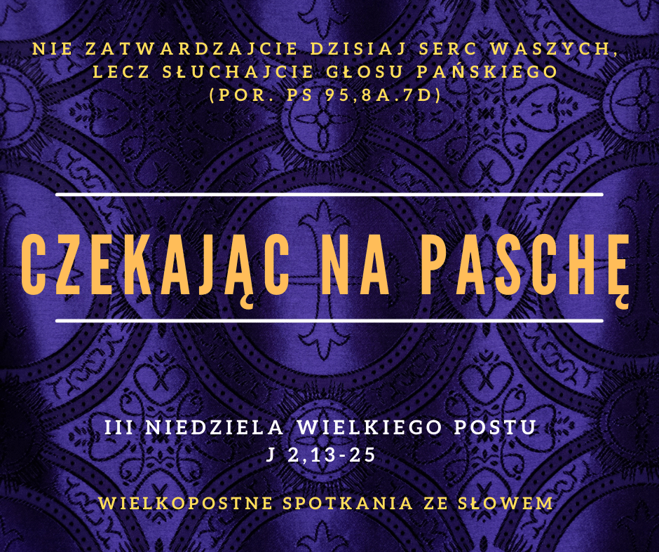 • „Zburzcie tę świątynię, a Ja w trzy dni wzniosę ją na nowo” (w. 19). Odpowiadając na żądanie znaku, który uzasadni Jego zachowanie, Jezus posługuje się motywem świątyni, by zapowiedzieć swoją mękę i zmartwychwstanie. Syn Boży, żywa Boża Obecność pośród ludzi, powstanie z martwych po trzech dniach od swojej śmierci. Wydarzenie to rozpocznie nową epokę w dziejach zbawienia. Stanie się fundamentem Nowego Przymierza, przedmiotem wiary Kościoła – nowego ludu Bożego, najpełniejszą Bożą obecnością, która urzeczywistniać się będzie wszędzie tam, gdzie wierzący w Chrystusa będą zbierać się na Łamaniu Chleba. Czy zwycięstwo Syna Bożego nad śmiercią stoi w centrum mojej wiary? Czy w wydarzeniu tym szukam uzasadnienia dla mojej pobożności, wierności Bożym przykazaniom i wielkopostnej walki duchowej?