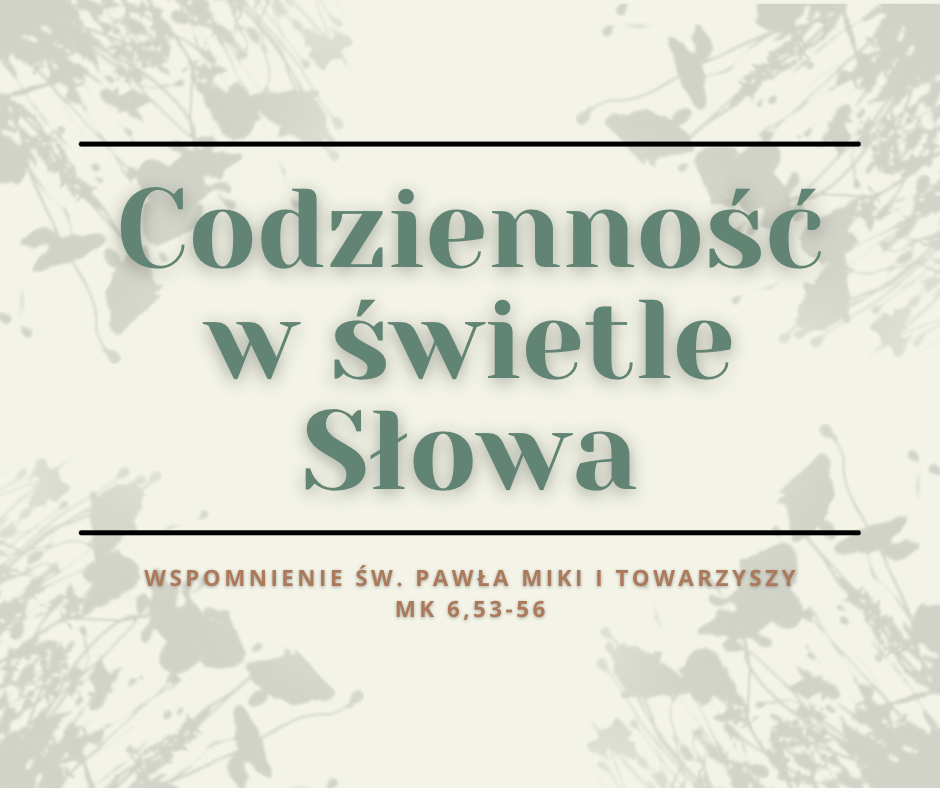 - I gdziekolwiek wchodził do wsi, do miast czy osad, kładli chorych na otwartych miejscach i prosili Go, żeby ci choć frędzli u Jego płaszcza mogli dotknąć. A wszyscy, którzy się Go dotknęli, odzyskiwali zdrowie (w. 56) Jezus dociera do każdej warstwy galilejskiego społeczeństwa. Odwiedza wsie, miasta i osady. Naucza i uzdrawia zarówno w zamkniętych pomieszczeniach synagog lub domów prywatnych, jak i na otwartych przestrzeniach. Podobnie jak w opowiadaniu o kobiecie cierpiącej na krwotok (por. 5,25-34), wystarczy samo dotknięcie Jego szaty, by uzdrowienie mogło się dokonać. Nie chodzi jednak tutaj o magiczne pojmowanie mocy Jezusa. Frędzle (gr. kraspedon – „brzeg, skraj, frędzel”) o których mowa, wieńczyły szale modlitewne zakładane przez żydowskich mężczyzn: „Powiedz Izraelitom, niech sobie zrobią frędzle na krajach swoich szat, oni i ich potomstwo, i do każdej frędzli użyją sznurka z fioletowej purpury. Dla was będą te frędzle, a gdy na nie spojrzycie, przypomnicie sobie wszystkie przykazania Pana, aby je wypełnić” (Lb 15,38-39). Jezus jako praktykujący Żyd, jest wzorem sprawiedliwości, czyli wierności Prawu Mojżeszowemu. Osoby, które jedynie dotykały skraju Jego szat, mogły zostać uzdrowione, gdyż wraz z Panem w ich życie wkraczała Boża sprawiedliwość. Co dzisiaj jest moim największym bólem lub niemożnością? Czy wierzę, że Jezus może mnie z tego uzdrowić?